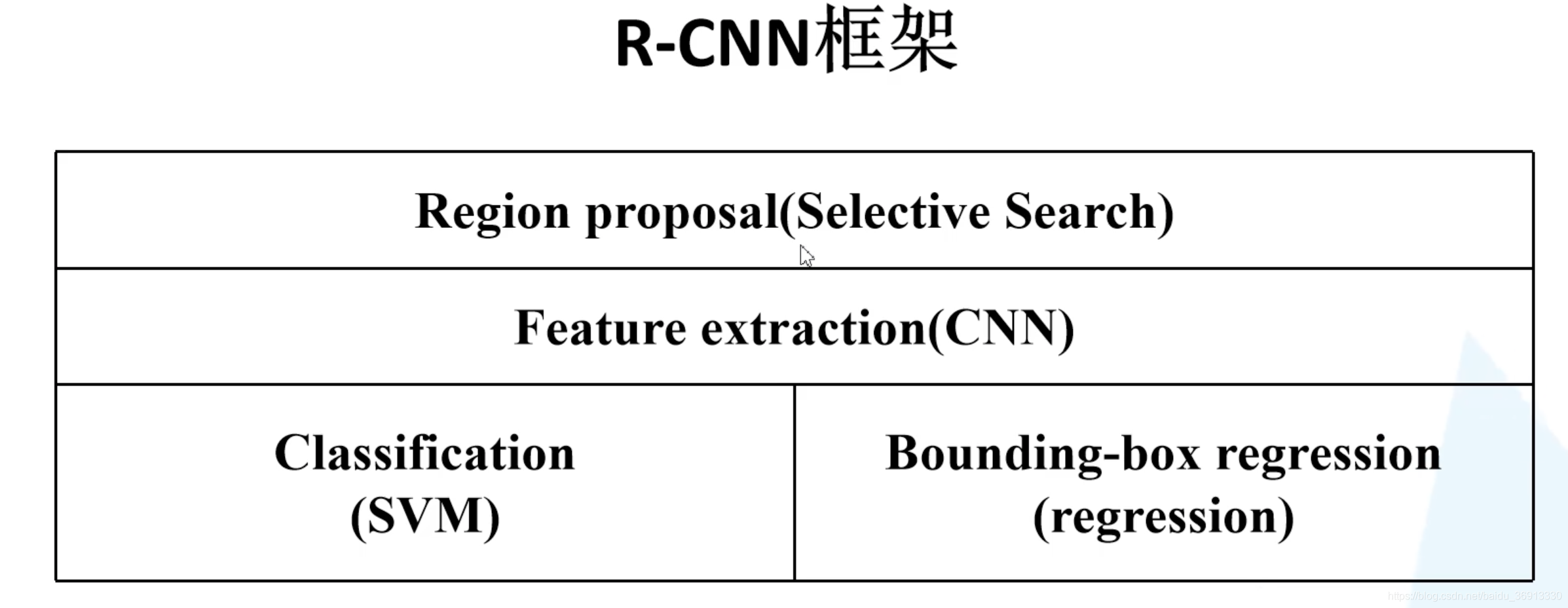 总结起来,R-CNN 包括以下四部分: