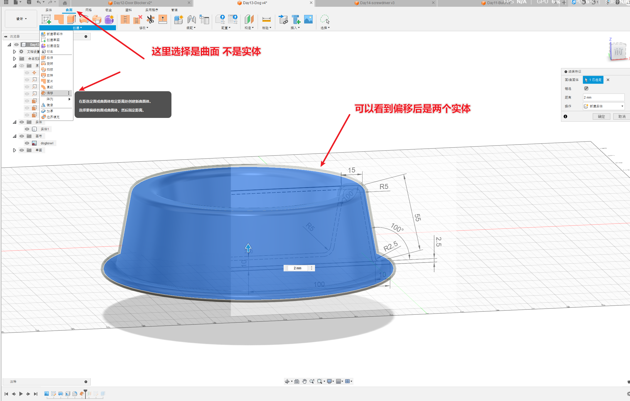 这一节主要是新学一个 曲面-偏移