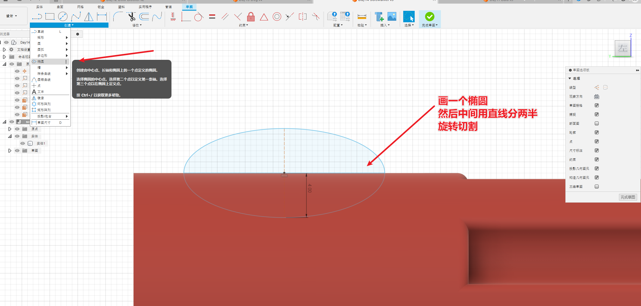 这一节新学的是草图中的椭圆
