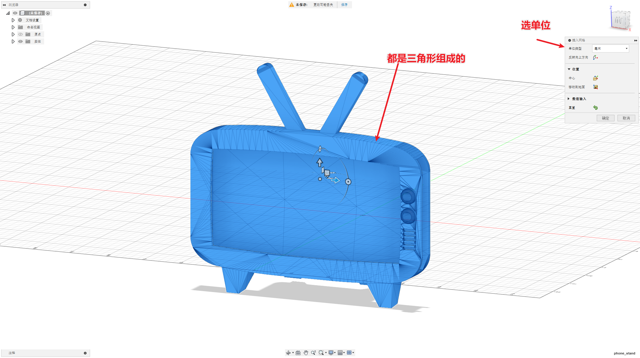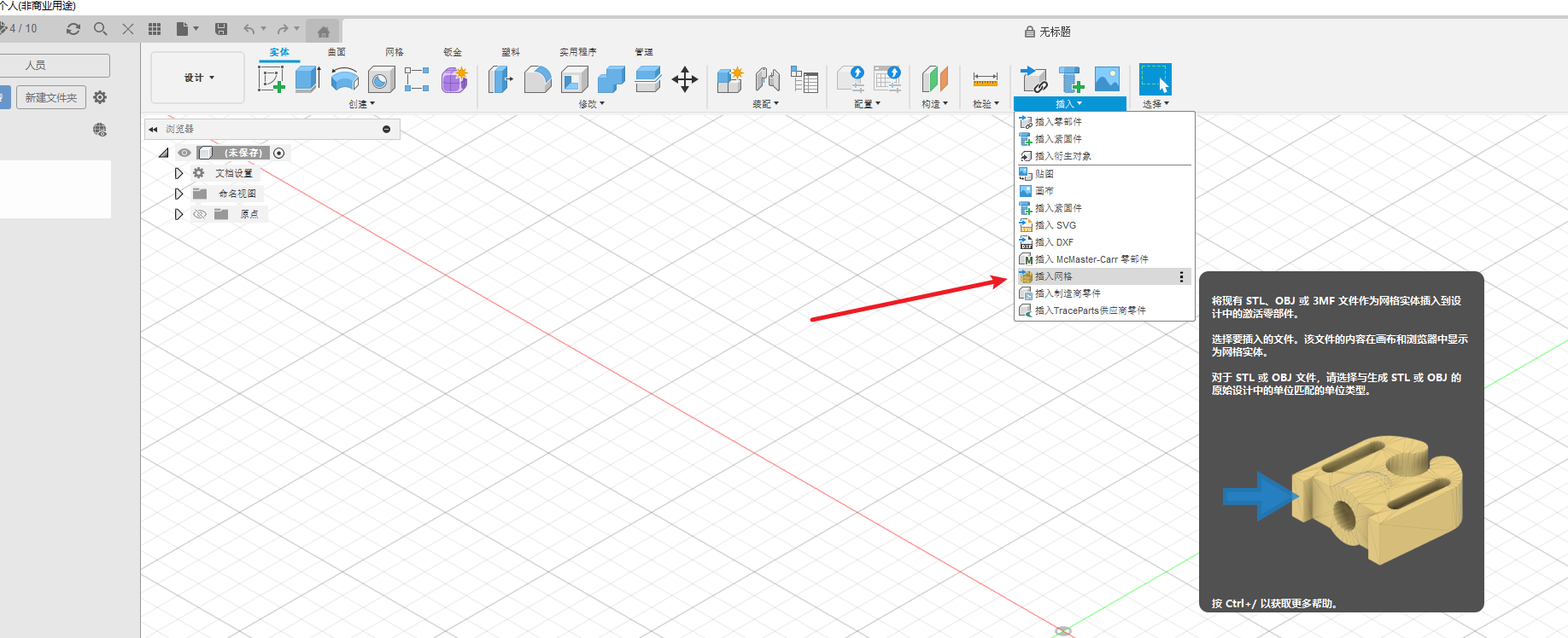 fusion 360支持的不是空心的模型,防水的(就是没有洞,不能进水)。我们下载的文件需要转换一下才能使用。
