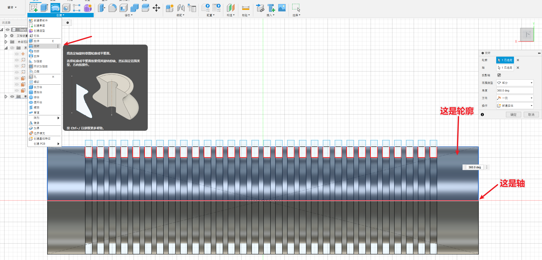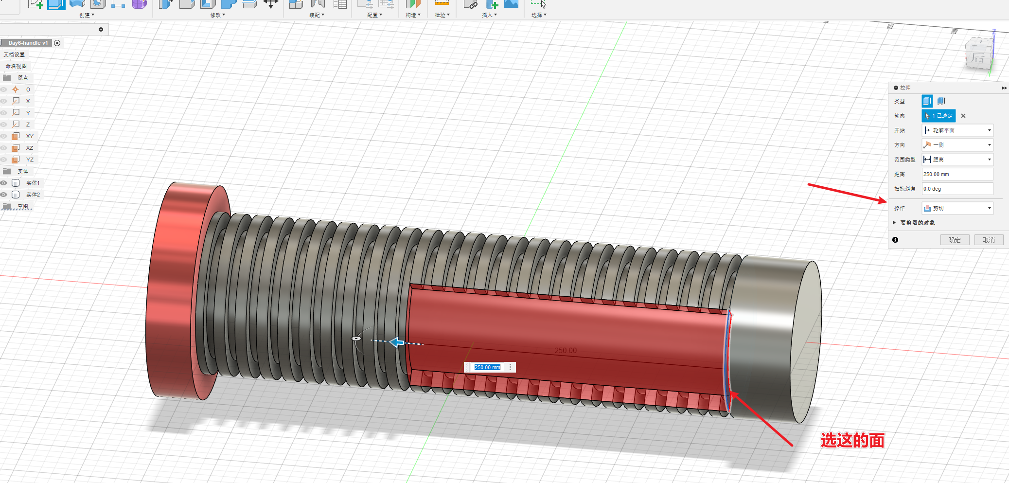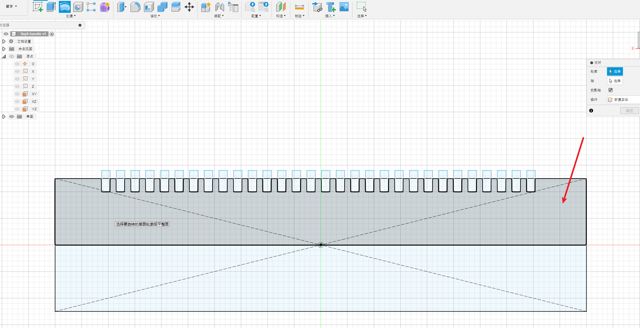 Day6-橡胶车把 发表于 2025-05-17 更新于 2025-05-18 分类于 Fusion 360 阅读次数: 简介根据B站的视频30天学会fusion 360 .这里针对每一个图纸的重点做一个记录。 参考https://www.bilibili.com/video/BV1UL4y177r8?spm_id_from=333.788.videopod.sections&vd_source=cde2e7b9bca1a7048a13eaf0b48210b6 橡胶把手重点步骤 多实体 表面纹路 文字 矩形阵列,选小矩形的四条边 旋转 新建实体这样可以区分为两部分材质 切割部分出来,为了显示文字 创建文本 拉伸,选择对象 成品图