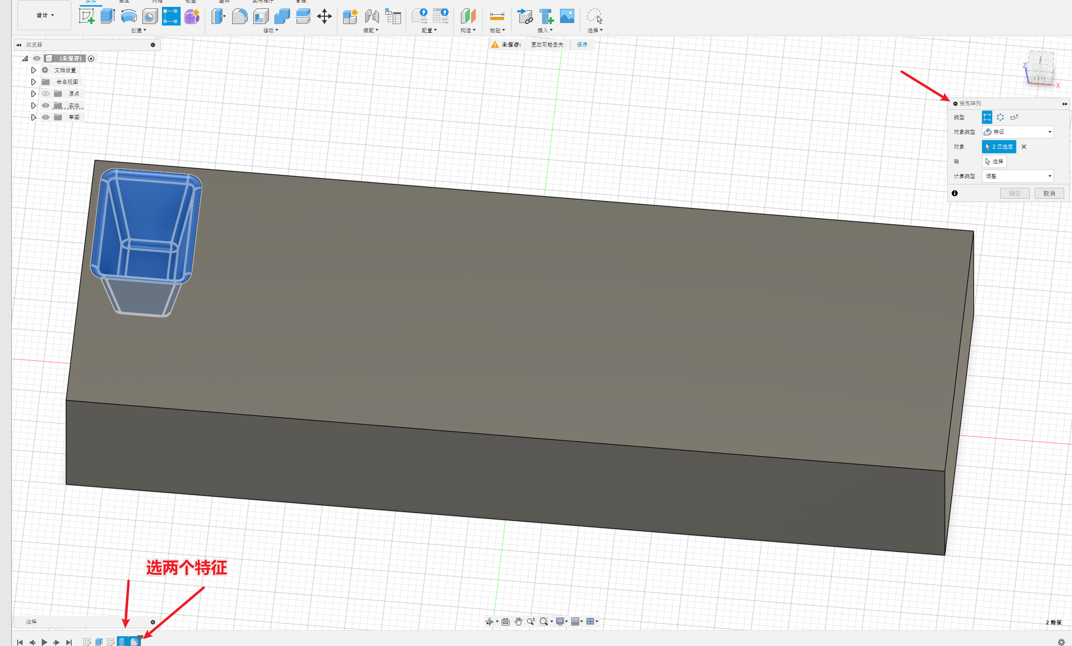 选择多个特征,一个是拉伸的特征,一个是圆角的特征