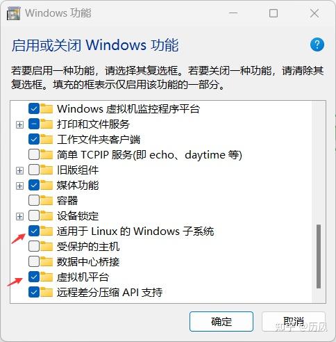 关键点:启用子系统和虚拟机平台,然后重启电脑。