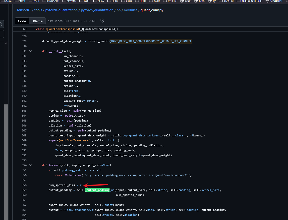在进行PTQ量化时,出现TypeError: _output_padding() missing 1 required positional argument: ‘num_spatial_dims’报错