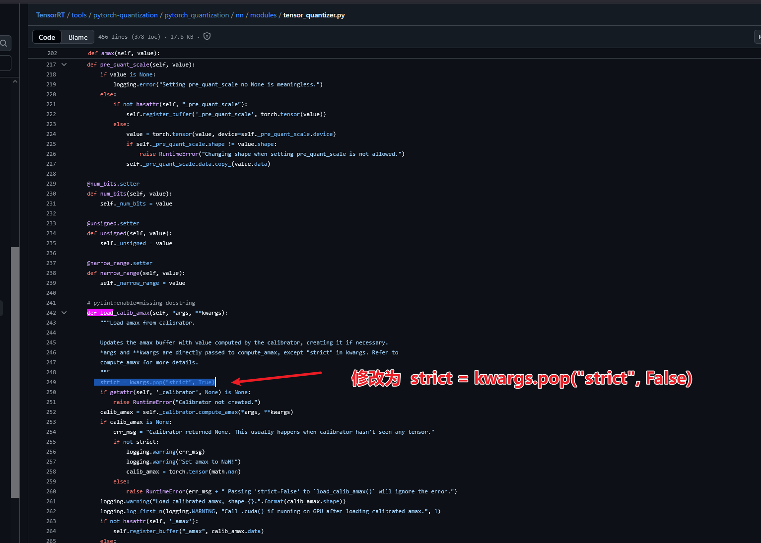 pytorch-quantization/pytorch_quantization/nn/modules/tensor_quantizer.py中def load_calib_amax(self, args, *kwargs):修改如下