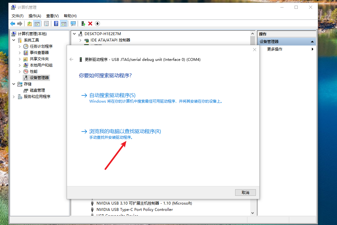 右键-卸载设备-更新驱动程序,选择了我的ESP-IDF框架的安装位置: